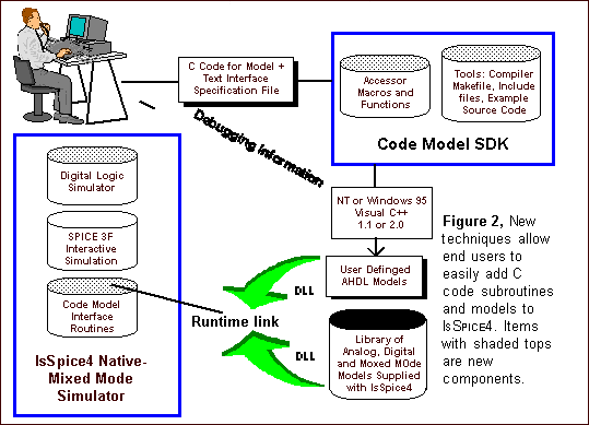 The CM-SDK consists of a compiler and other tools, code model examples and source code, include files, and documentation on how to create AHDL models. The toolkit is supported under Microsoft Visual C++ 1.1 or 2.0 under Windows NT or Windows95.